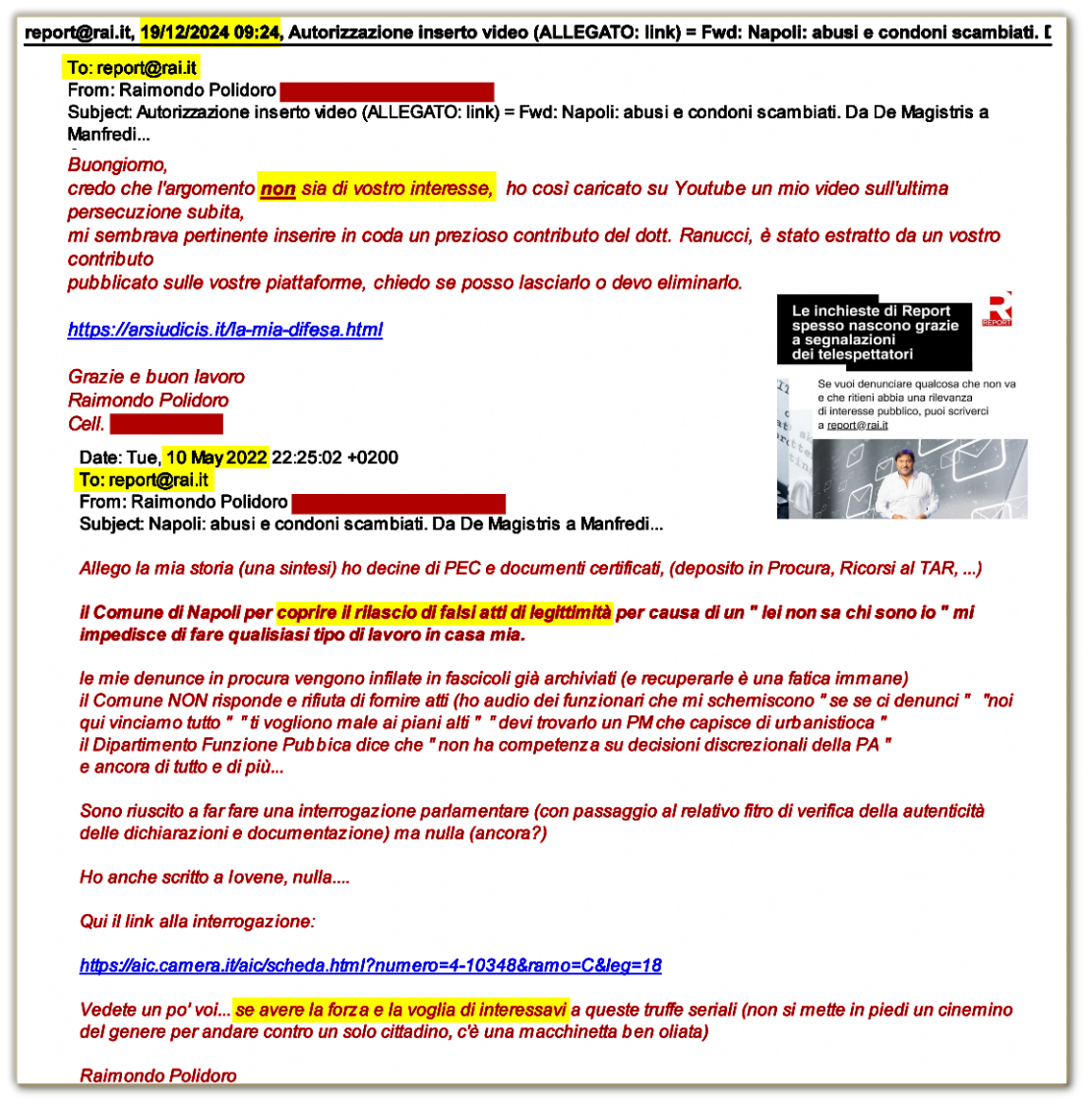 Non comprendo perchè il PM e la GIP non hanno accolto la richiesta dell'accusatore, il Sindaco di Napoli, di effettuare una ispezione in sito per verificare se gli abusi edilzi sono presenti nelle case dei vicini che "sostenendo di avere amici e parenti ai piani alti" dal 2015 hanno avviato una vera e propria "persceuzione amministrativo-giudiziaria" a mio carico per impedire che fossero scoperti come poi in effetti sono stati scoperti "Brogli e ingiustizie" al Comune di Napoli, e non solo.